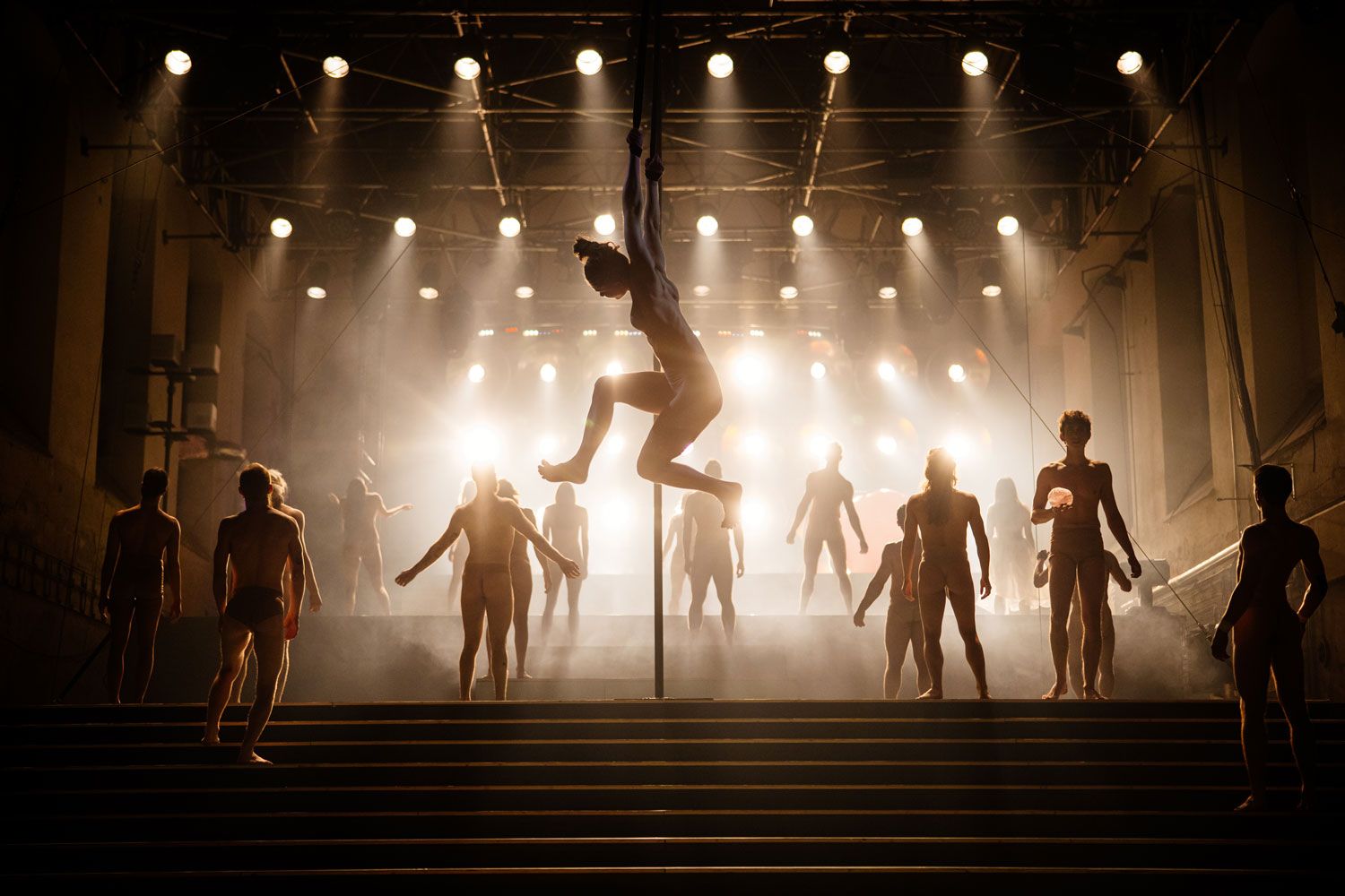 Jaká je cesta k euforii? Co pro tenhle pocit musí člověk udělat? Stačí se podívat na obraz? Být blízko přírodě? Nebo člověk musí vystoupat někam hodně vysoko, aby ji mohl prožít? / Vzrušení. Dekadence. Hudba. Rytmus. Tělo. Zážitek. Kabaret. Show. Euforie. / V inscenaci Rosti Nováka vytváříme místo, na kterém můžete zapomenout na denní starosti a na existenci času a prostoru, kde budete moci svobodně prožít všechno, co přijde. Místo, které vzniká právě v daný okamžik, tady a teď, jen a jen pro vás. Místo, kde si odpočinete v euforii. / Společně se dotkneme přírody, nahoty, rytmu, humoru, grotesky i satiry. České a zahraniční hvězdy cirkusového světa s hudebním doprovodem od Katarzie rozvibrují vaši imaginaci. / Inspirujeme se slavnou historií české kabaretní scény počátku 20. století. Zjistíme, co mají společného Voskovec a Werich s kabarety, jako jsou La Clique, Moulin Rouge či Blanc de Blanc. / Račte vstoupit! Kudy? Dveřmi, jež vás pustí do světa, kde se může stát cokoli. Propadneme se společně do euforie, do světa niterných prožitků, odkud se možná už nebudeme chtít vrátit.